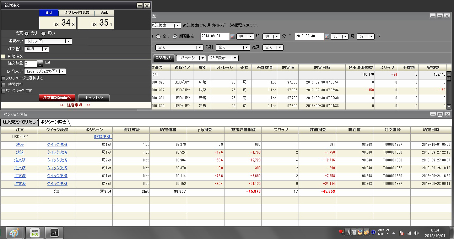9月にもった買ポジションが決済されない…目標は99.150なんですが…