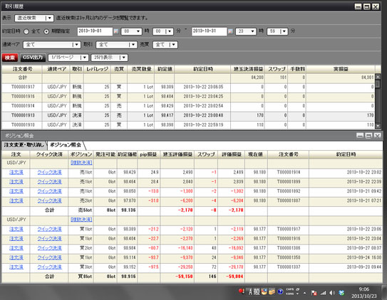 USD/JPY 新規 1 97.741 2013/10/23 12:35 10/23